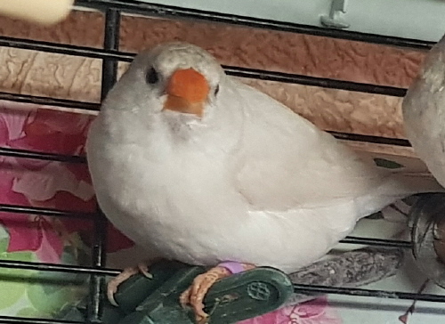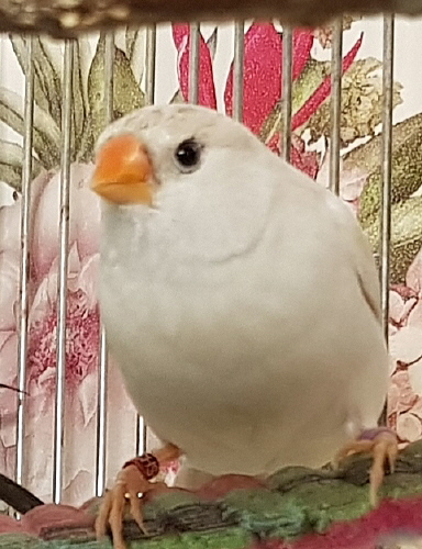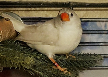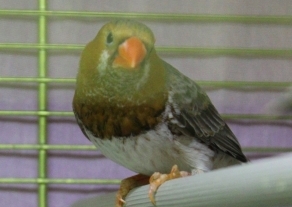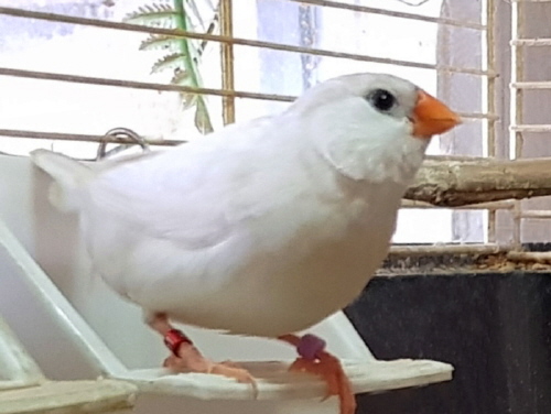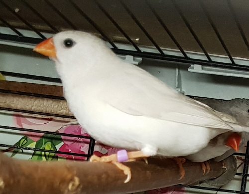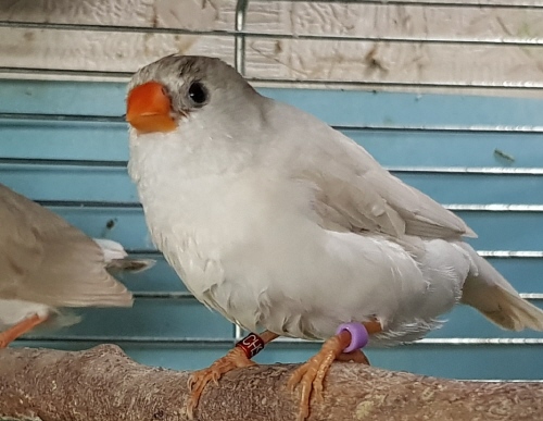 Фото Адель (годовое несъемное кольцо №51 на правой лапке, сиреневое кольцо на левой лапке):