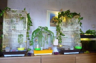 В каждой клетке или вольере обязательно должны быть одна или несколько кормушек, поилка, баночка для минерального корма и несколько жердочек.