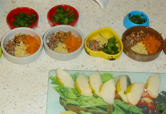 Начинать добавлять морковь, потом зелень, фрукты и довести до ежедневного