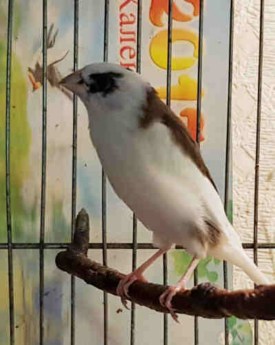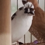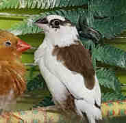Мать Берты - Ромашка Мать Берты (Ромашка) - хохлатая пестрая бело-шоколадная самка. Отец Берты - белый самец. |