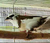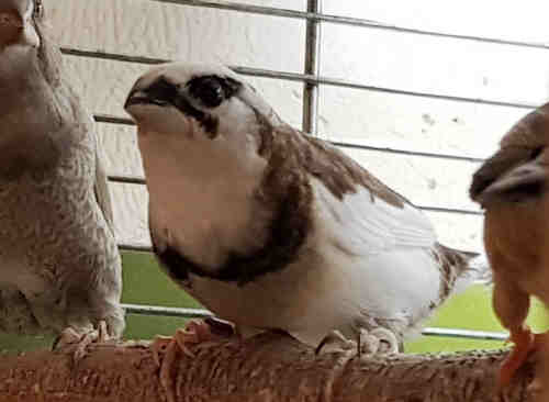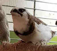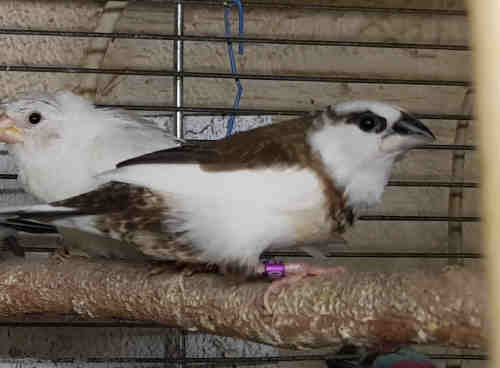 отец - белый самец, мать - пестрая бело-шоколадная самка сэдлбэк панда.