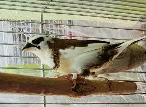 пестрая бело-шоколадная самка сэдлбэк панда, рождение 25.09.21 г.