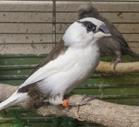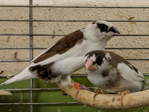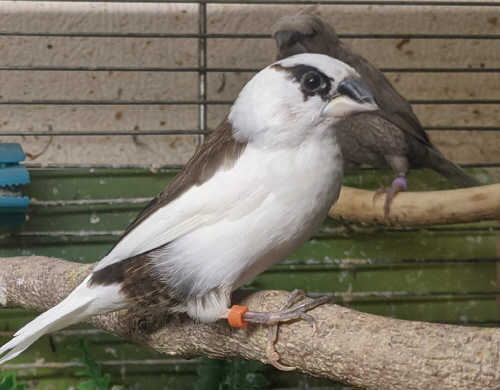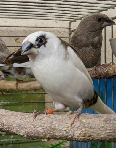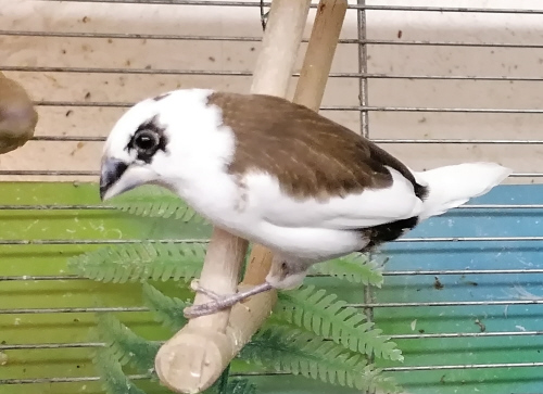 Берта Берта - пестрая бело-шоколадная самка сэдлбэк панда |