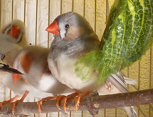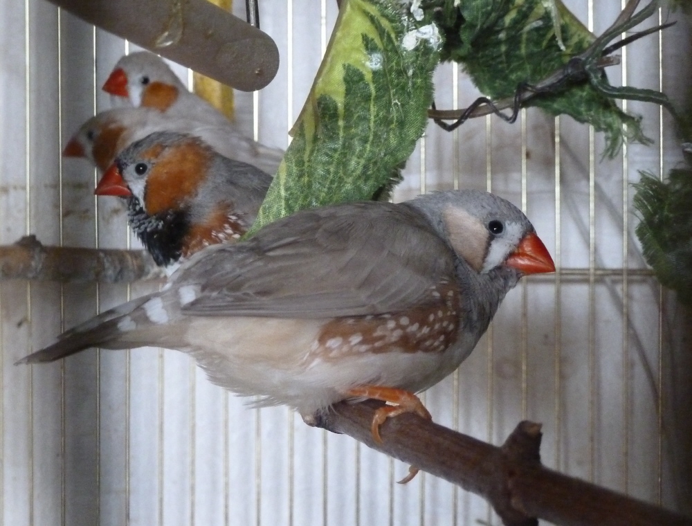 | Отец - черногрудый серый самец щепный на оранжевогрудых |