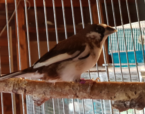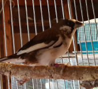 пестрый бело-шоколадный самец щепный на светлокрылых палевых (рожден в 25.10.21)