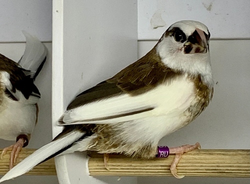 Бэтти Бэтти - пестрая бело-шоколадная самка сэдлбэк панда |