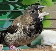 Муся Муся - крупная хохлатая шоколадная самка с пестротой щепная на светлокрылых палевых |