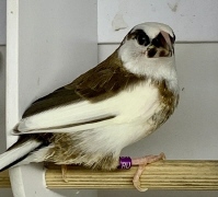 Хасан Хасан - пестрый бело-шоколадный самец сэдлбэк панда щепный на светлокрылых палевых |