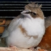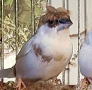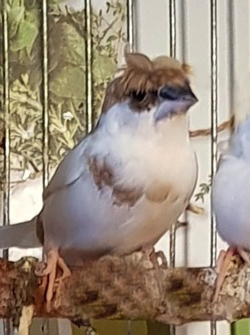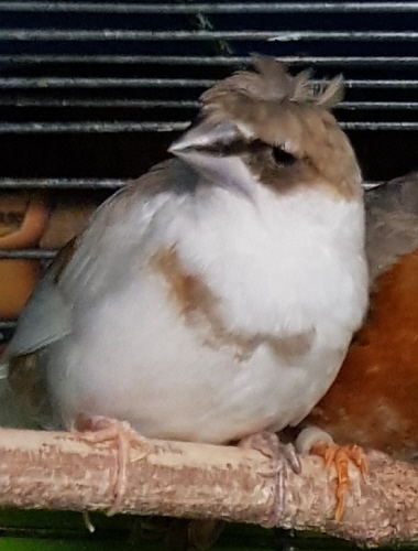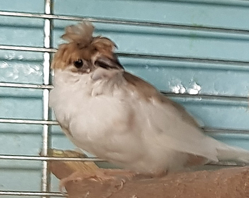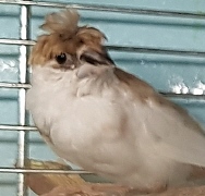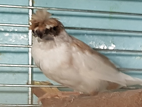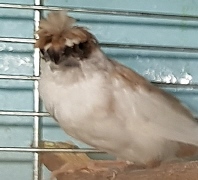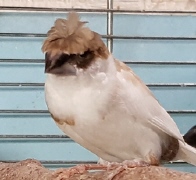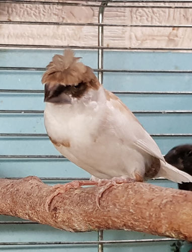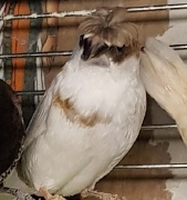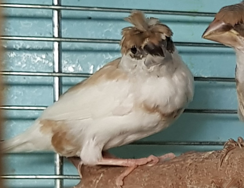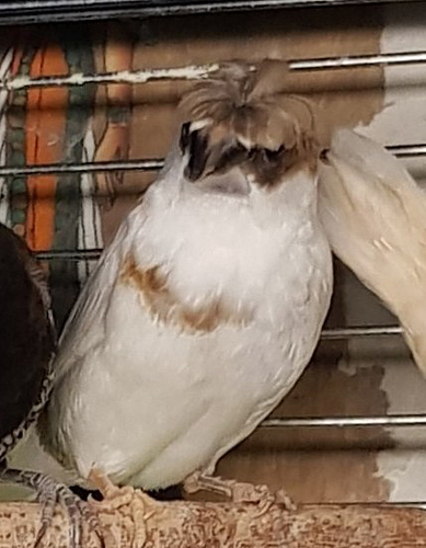 хохлатый пестрый бело-каштановый осветленный самец сэдлбэк панда с шапочкой (д.р. февраль 2017 г.)
