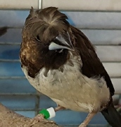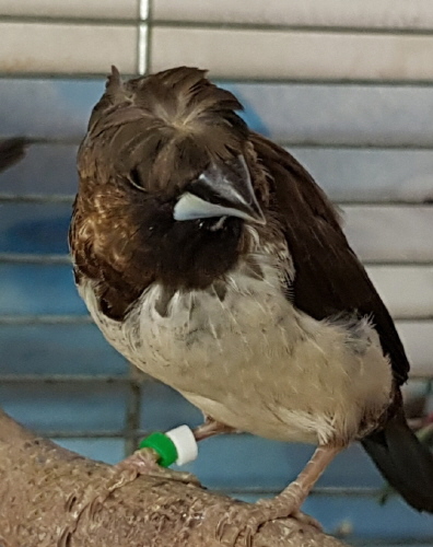 Фото Кренделя (зеленое и белое кольцо на правой лапке):