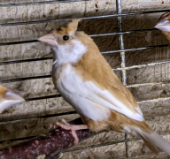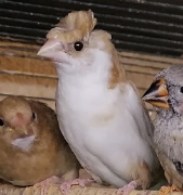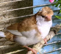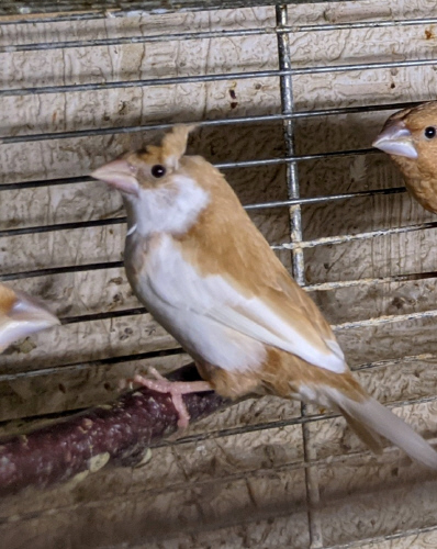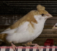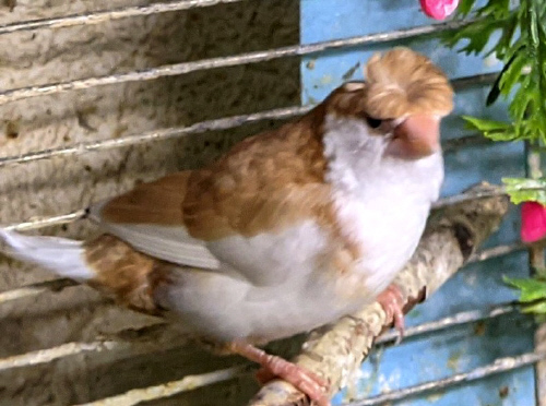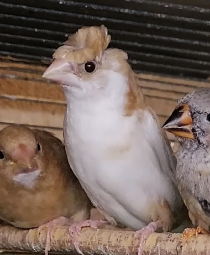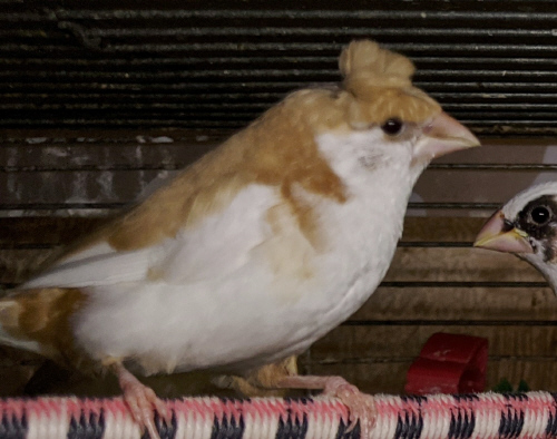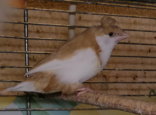 хохлатый (2 хохла) пестрый бело-палевый самец сэдлбэк с воротником и короной от пары Моисей и Бэтти, рождение 02.12.22