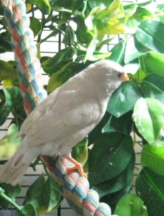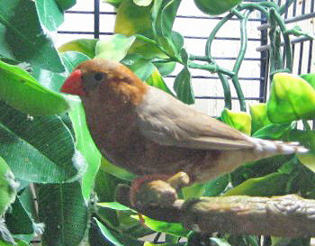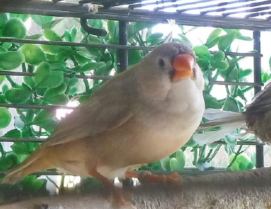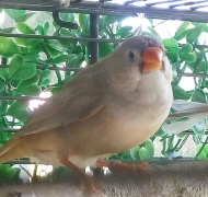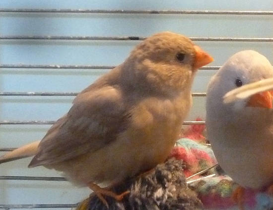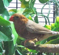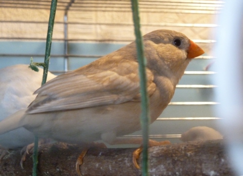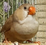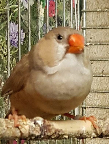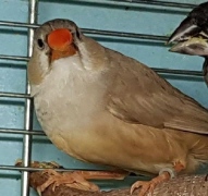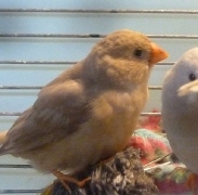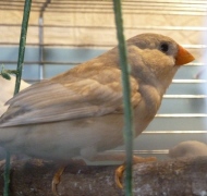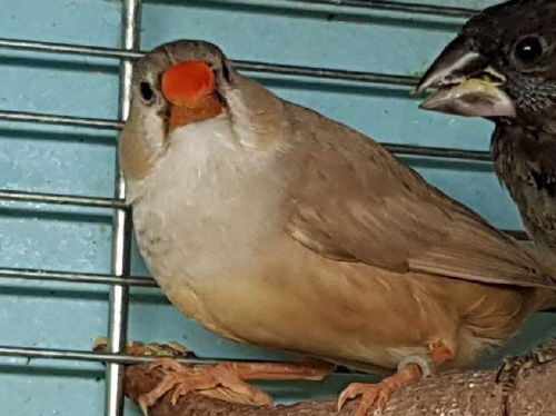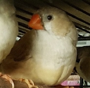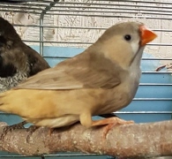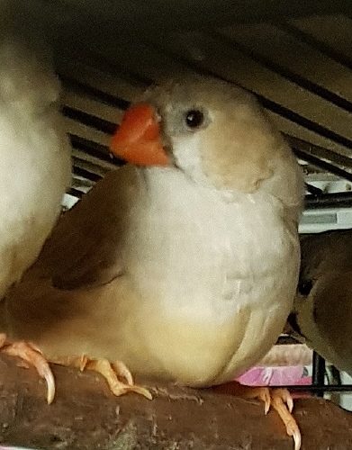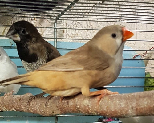 очень крупная чернолицая черногрудая палевая самка щепная на оранжевогрудых, желтоклювых и изабель (д.р. апрель 2017 г.)