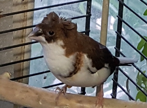 хохлатый бело-шоколадный самец с воротником (в апрель 2020 г. - февраль 2024 г.)