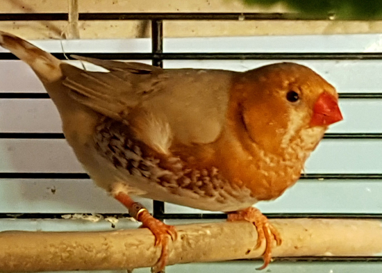 Фото Нестора (золотое несъемное кольцо 2016 г. на правой лапке и коричневое кольцо на левой лапке):