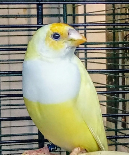 Самка №1 - самка желтая оранжевогловая белогрудая, кольцо 2017 г. |