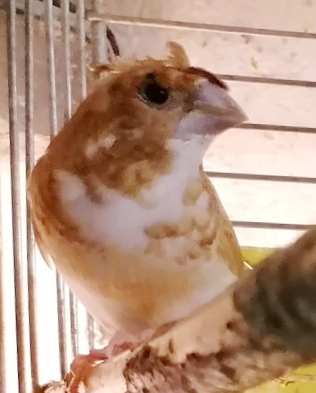 хохлатая палевая самка с пестротой (рождена в июль 2023 г.)