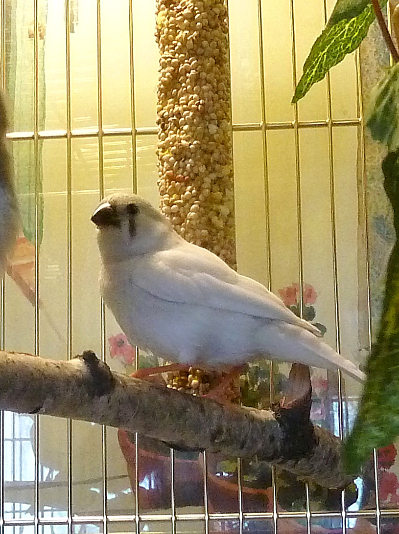 Снежинка - самка серый мармазет щепная на чернощеких и черногрудых (красное кольцо на левой лапке):