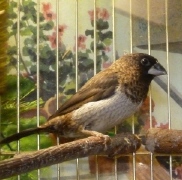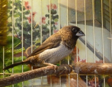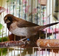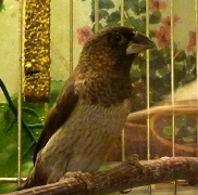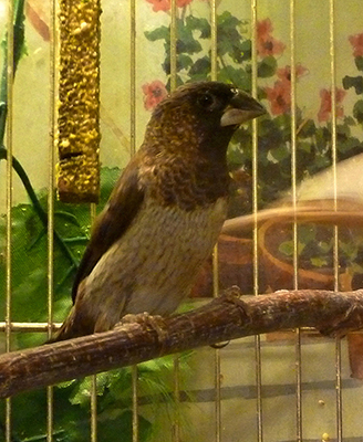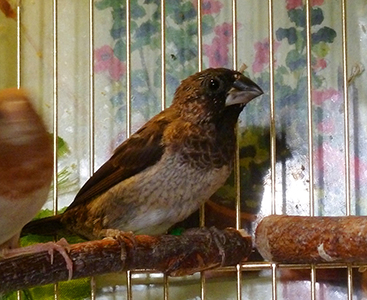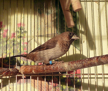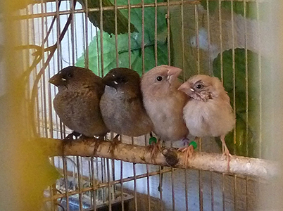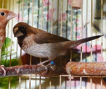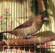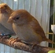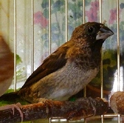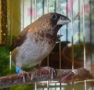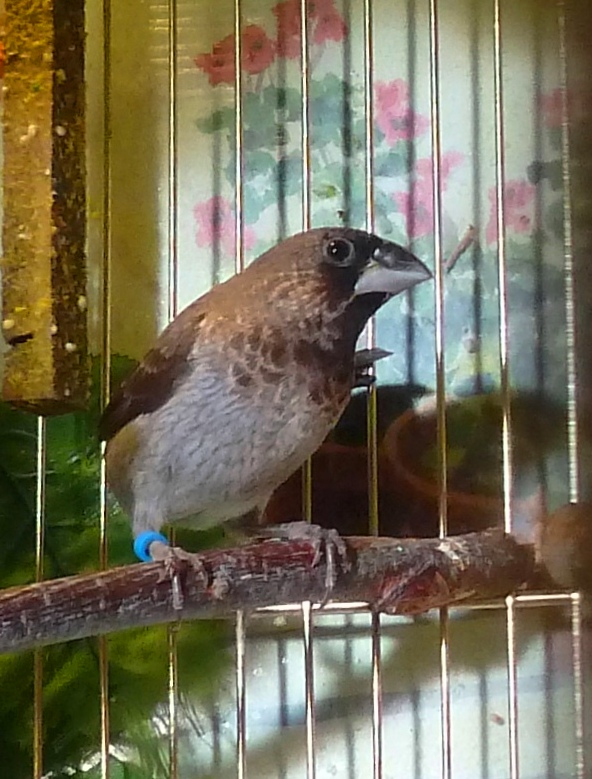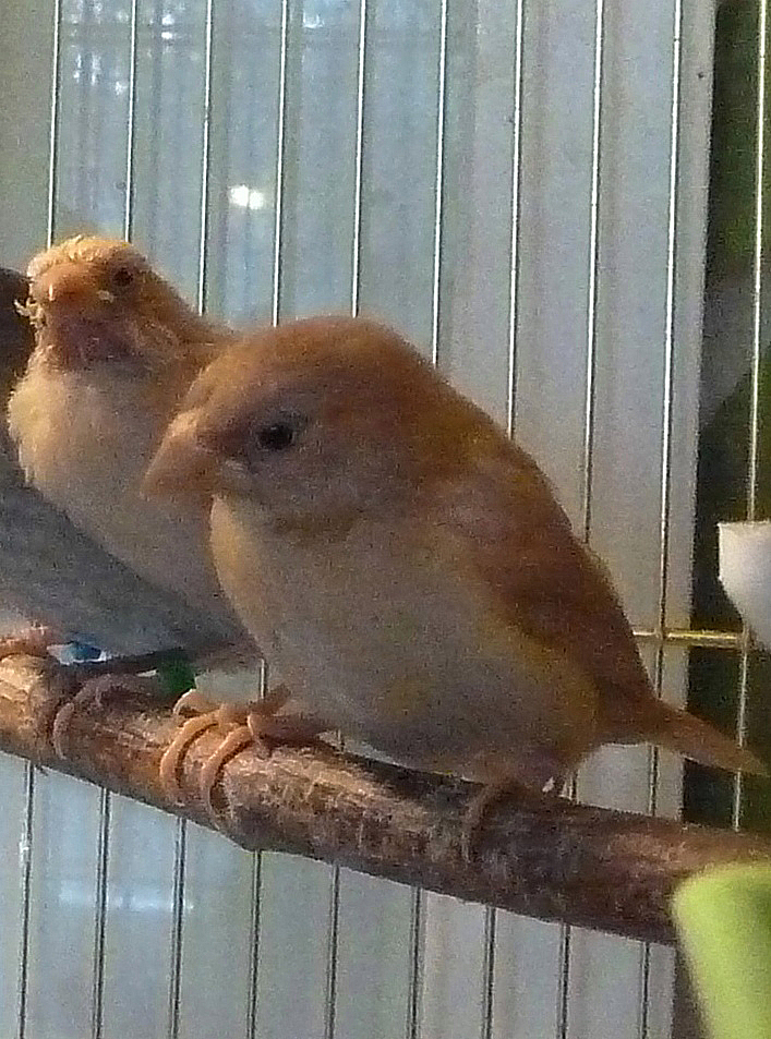 Киви - шоколадная самка (синее кольцо на правой лапке):