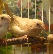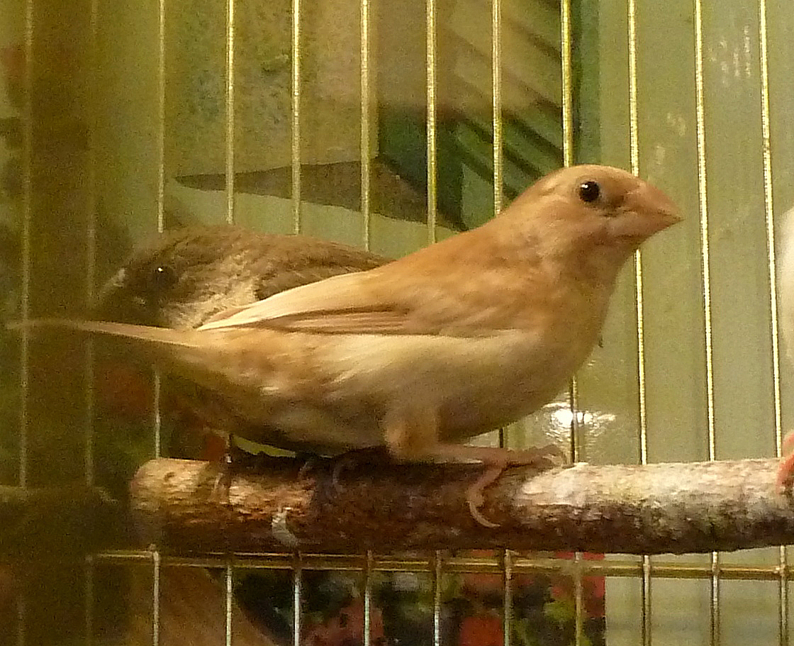 Сатори - палевая самка (зеленое кольцо на правой лапке):