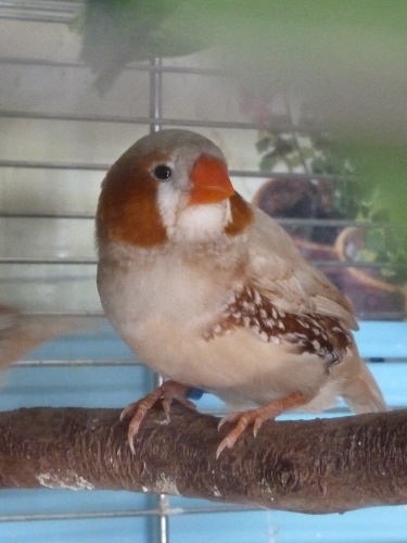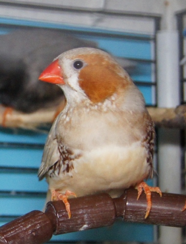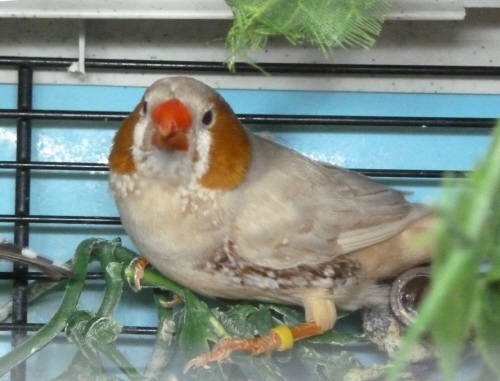 Барбарис - крупный черногрудый оранжевогрудый самец палевый изабель (голубое кольцо на правой лапке):