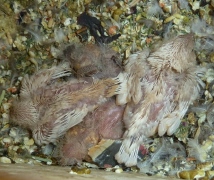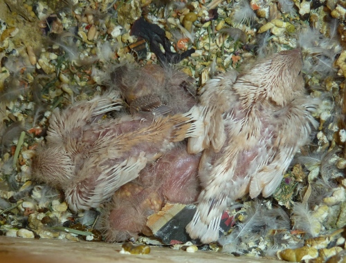 Гнездование №101: Птенцы от пары очень крупный черногрудый оранжевогрудый самец палевый изабель и Эйприл, рождение 22.01.16 (5 птенцов)