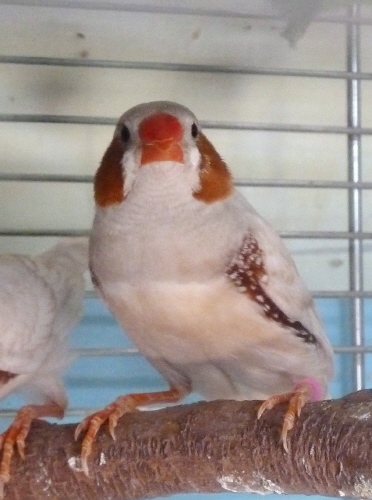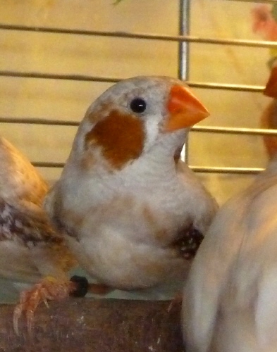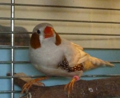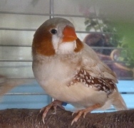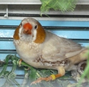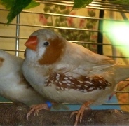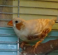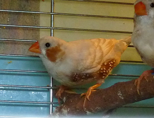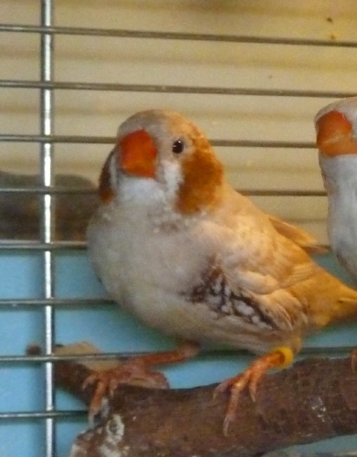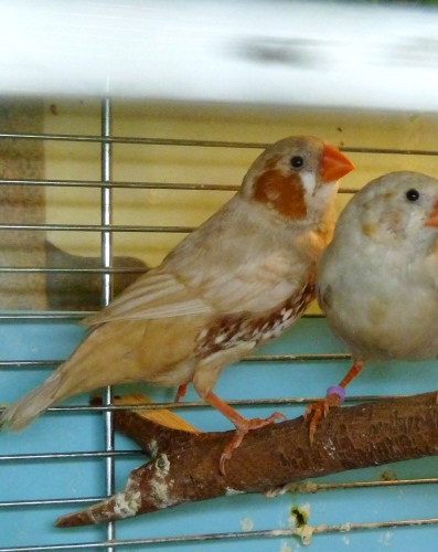 Рене - крупный самец палевый изабель щепный на черногрудых и оранжевогрудых (розовое кольцо на левой лапке):