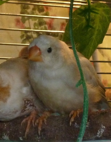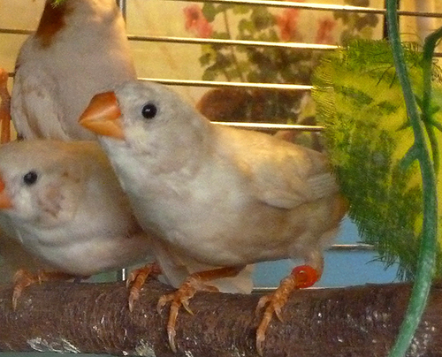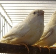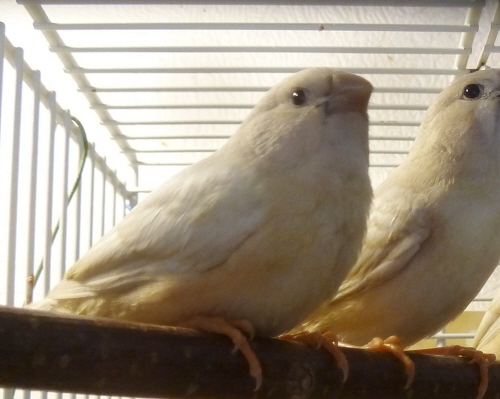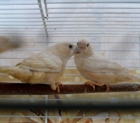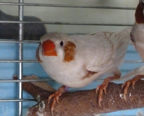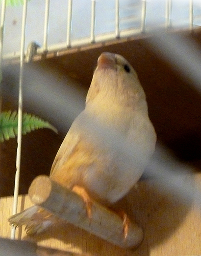 Байт - самец палевый изабель щепный на черногрудых и оранжевогрудых (сиреневое кольцо на правой лапке):