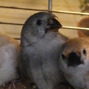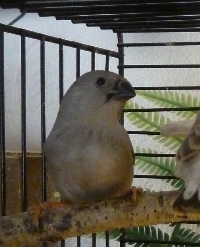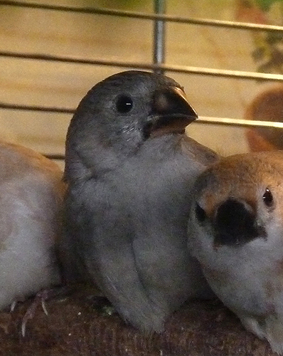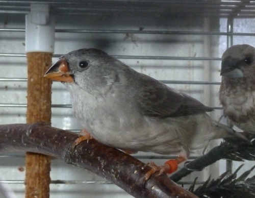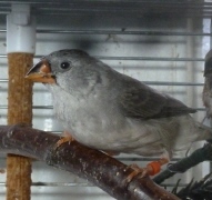 Гелла - чернолицая чернощекая черногрудая (триблэк) серая самка (оранжевое кольцо на левой лапке):