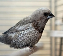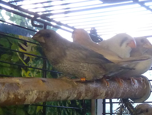 Пьер - жемчужный самец (несъемное кольцо 0,28 №061/RU-2016 г. на левой лапке):
