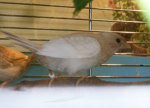 Милли - палевая светлокрылая самка (несъемное кольцо 027-RU/2,5-16 на правой лапке):