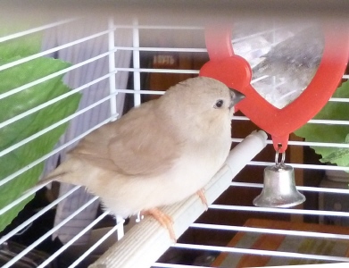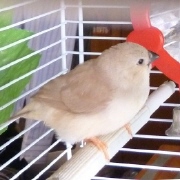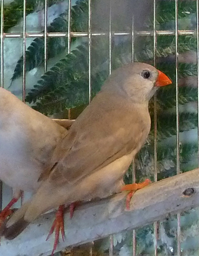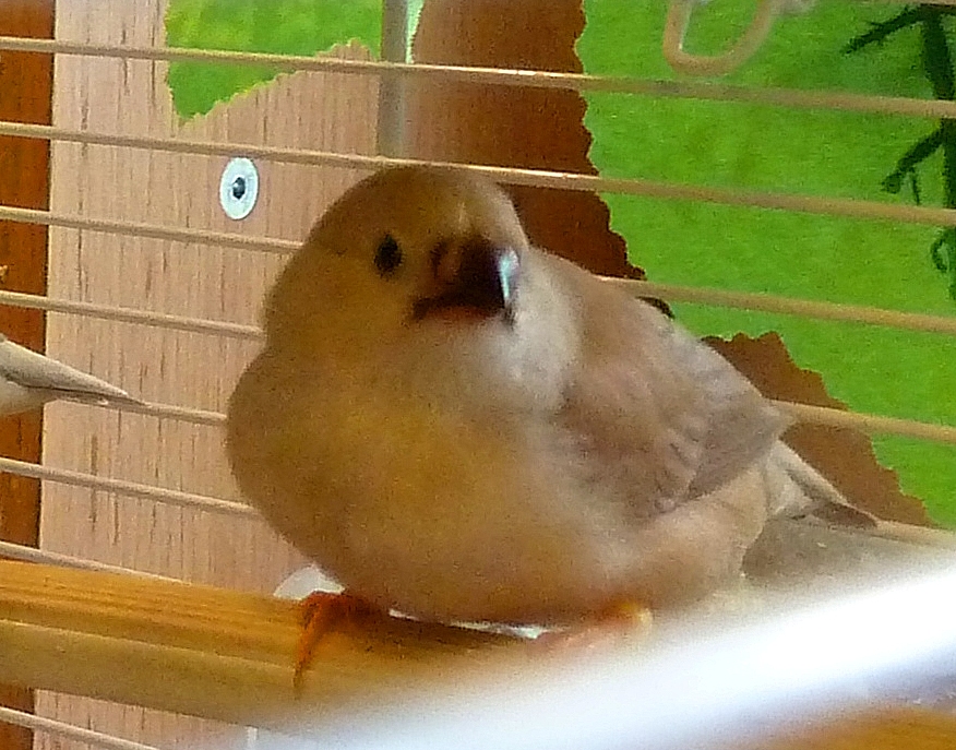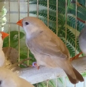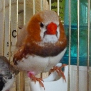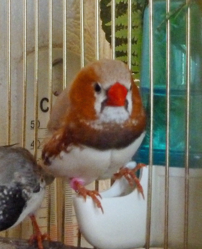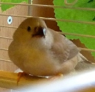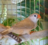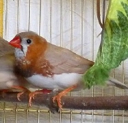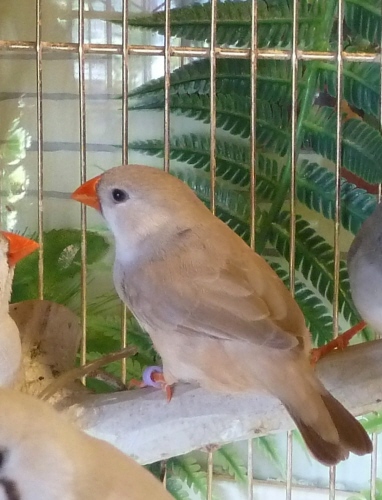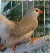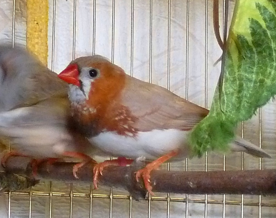Фиеста - черногрудая оранжевогрудая палевая самка (желтое кольцо на левой лапке):