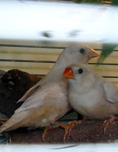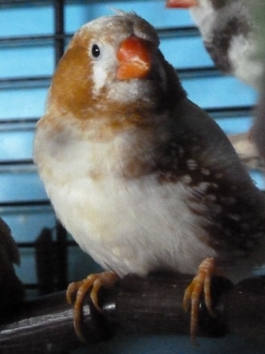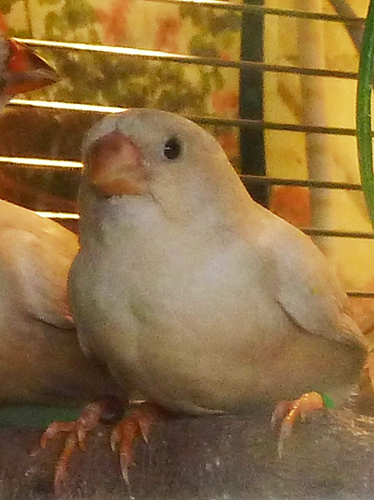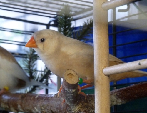 Пэгги - оранжевогрудая самка палевый изабель щепная на черногрудых (зеленое кольцо на левой лапке):