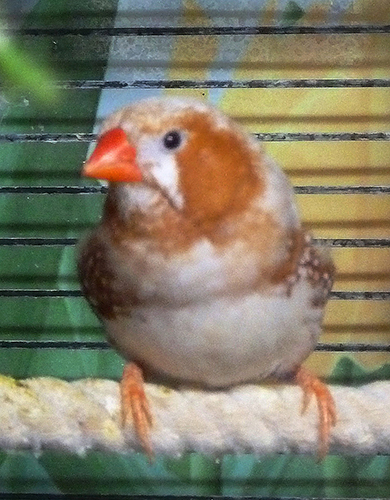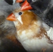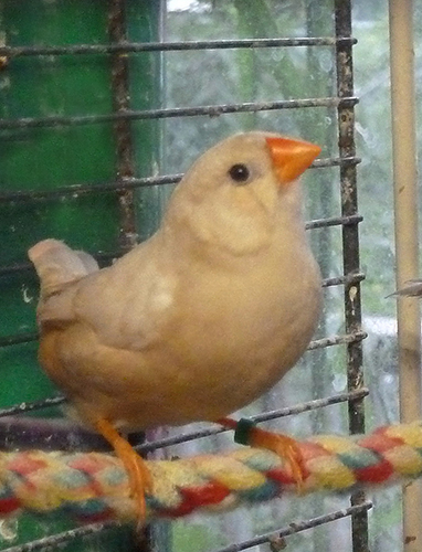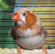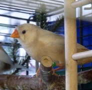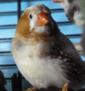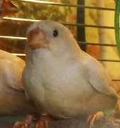 Паскаль - черногрудый оранжевогрудый самец палевый изабель (сиреневое кольцо на левой лапке):