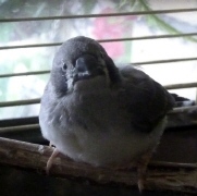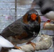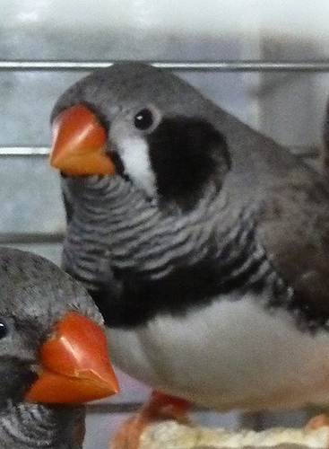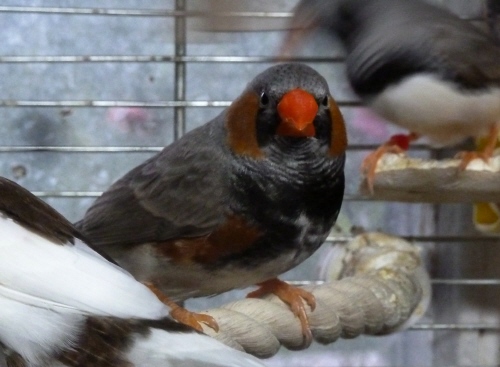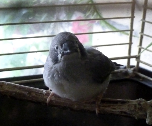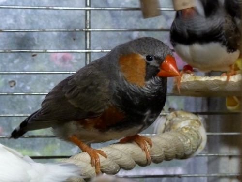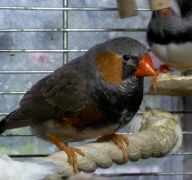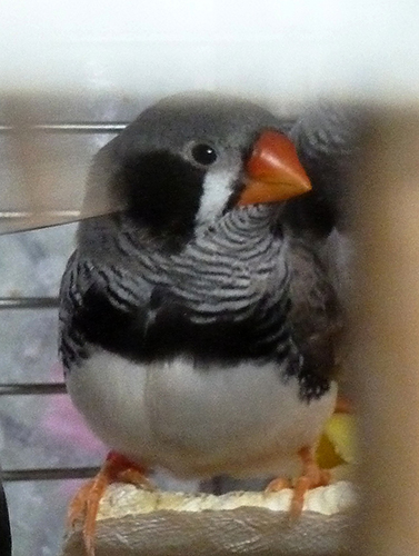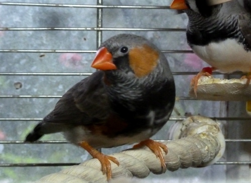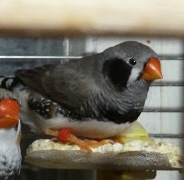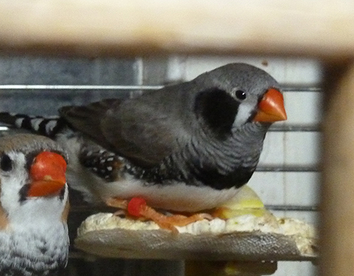 Прохор - чернощекий серый самец щепный на черногрудых (красное кольцо на правой лапке):