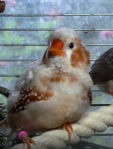 Орфей - крупный черногрудый оранжевогрудый самец палевый изабель (розовое кольцо на правой лапке):