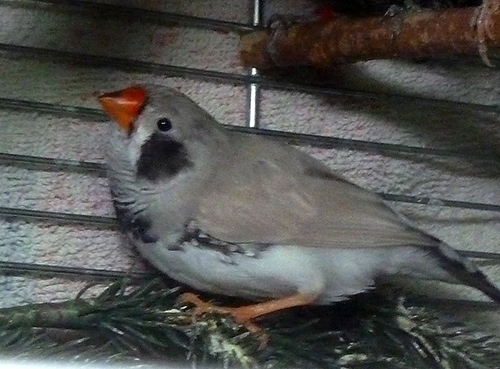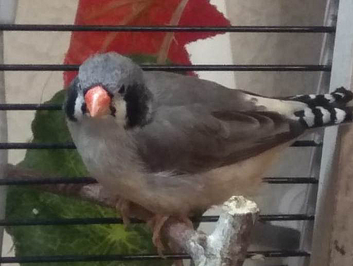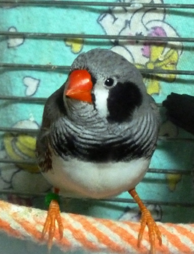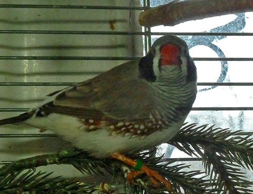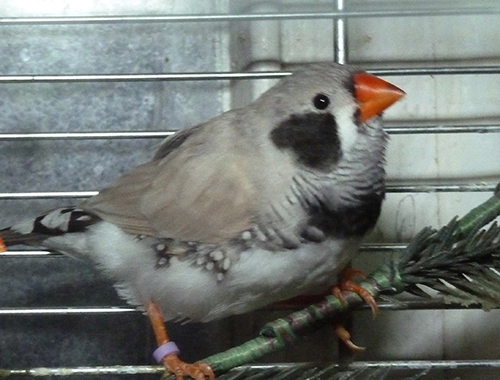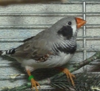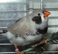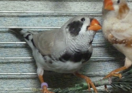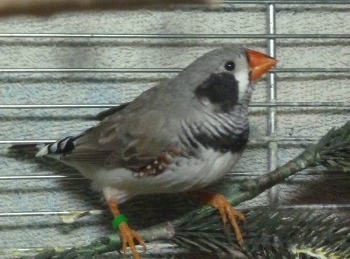Каллиопа - крупная чернолицая чернощекая серая самка щепная на черногрудых (красное кольцо на правой лапке):