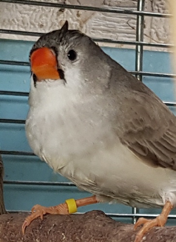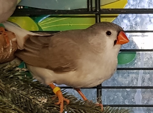 Флиси - очень крупная черногрудая самка лайтбэк щепная на изабель и оранжевогрудых (желтое кольцо на правой лапке):