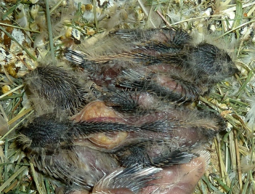 Гнездование №135: Птенцы от пары Тиша и Груша, рождение 25.03.17 (3 птенца)