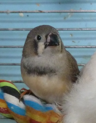 Фима - чернолицый серый самец щепный на палевых, чернощеких и черногрудых (без кольца):