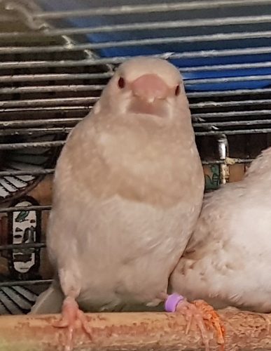 Оливер - крупный осветленный палевый самец щепный на кремино (оранжевое кольцо на правой лапке):
