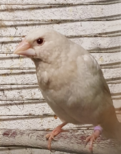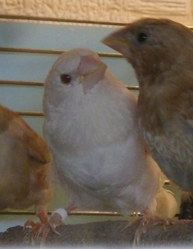 Женевьева - крупная самка грэйино (красное кольцо на правой лапке):