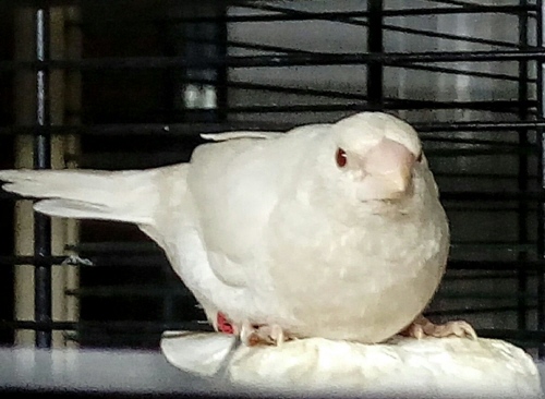 Вагнер - крупный самец грэйино (сиреневое кольцо на левой лапке):