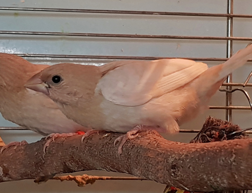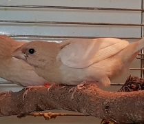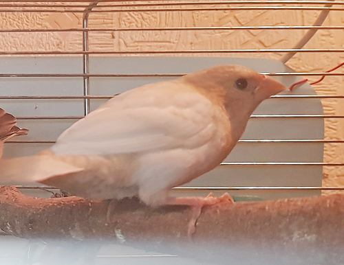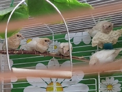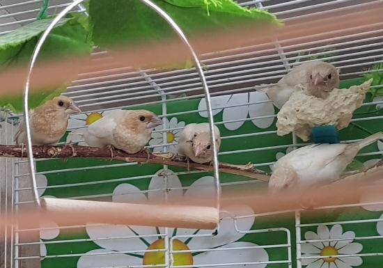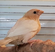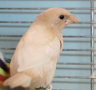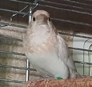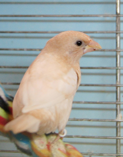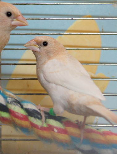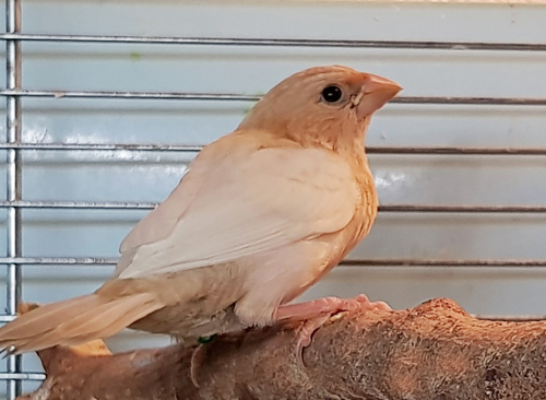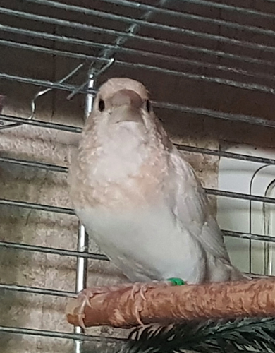 Лотос - светлокрылый палевый самец (зеленое кольцо на левой лапке):
