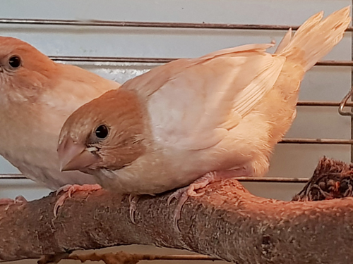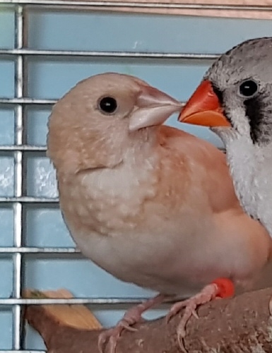 Рашель - светлокрылая палевая самка (белое кольцо на правой лапке):
