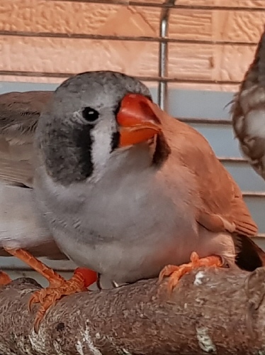 Дороти - крупная чернощекая самка лайтбэк щепная на черногрудых (оранжевое кольцо на правой лапке):