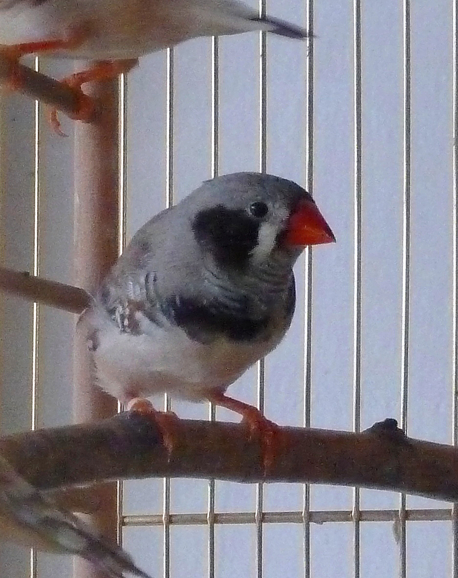 Мудрик - чернолицый черногрудый серый самец щепный на чернощеких и палевых (оранжевое кольцо на правой лапке):