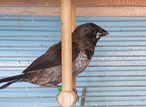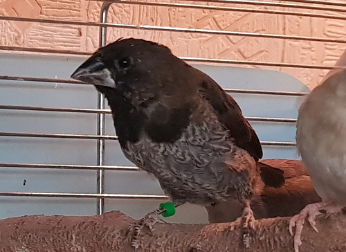 Рамзес - крупный черно-коричневый самец щепный на кремино (зеленое кольцо на левой лапке):