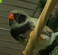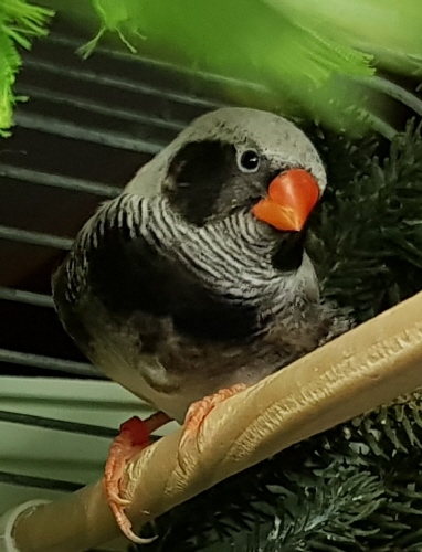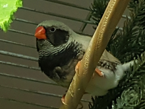 Крупный чернолицый чернощекий самец лайтбэк щепный на черногрудых (красное кольцо на правой лапке):