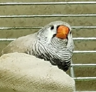 Цветик - крупный черногрудый чернощекий (белощекий) самец палевый лайтбэк (салатовое кольцо на правой лапке):