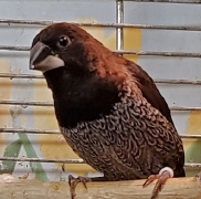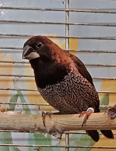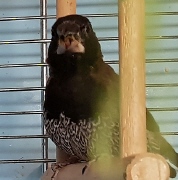 Казимир - крупный черно-коричневый самец (белое кольцо на правой лапке):